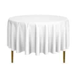 108" round tablecloths are commonly used on 5' and 6' round tables for partial